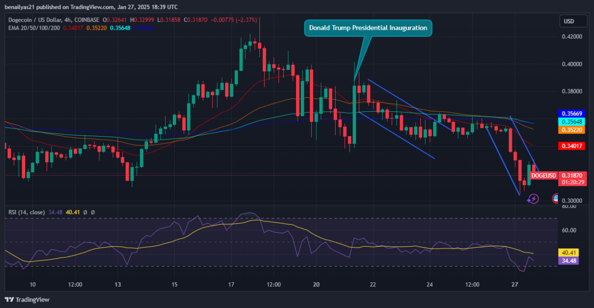 Janvier 2025 a été un bras de fer entre l’optimisme haussier et la domination baissière. L’indice de résistance relative (RSI) indique un contrôle baissier, mais les bandes de Bollinger en expansion font allusion à une volatilité accrue des prix. Un niveau de résistance critique de 0,3614 $ se profile comme un tournant potentiel. Si Doge traverse cette barrière, il pourrait enflammer un renversement haussier.