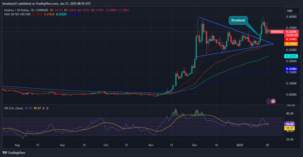 HBAR vise un rallye de 22 % — Résistance clé à 0,4012 $