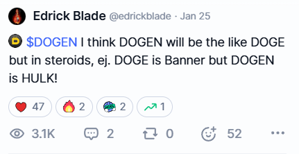 Dogen, qui a récemment capturé l’intérêt de la communauté cryptographique avec son récit audacieux du Coin de mèmes les plus fortes pour les mâles alphaa été répertorié le 4 février.