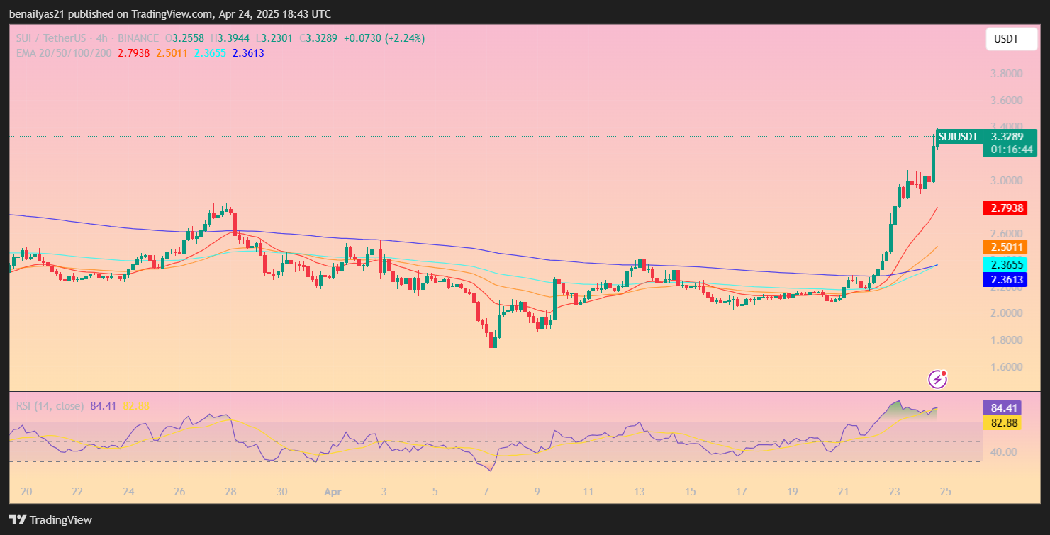 Le jeton natif de la blockchain SUI, SUI, a atteint un niveau de prix de 3,36 $ jeudi, en concurrence avec le plus de 3,48 $ de 3 mois. Le Sui Bull Run survient au milieu de la tendance à la baisse du marché plus large de la cryptographie. L’augmentation constante de l’écosystème de l’écosystème de l’activité et les entrées de capitaux ont transformé son prix au-delà des obstacles clés.